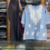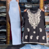 Step into style with this eye-catching ensemble designed for today’s confident and fashion-forward women. The black kurti showcases intricate white embroidery that adds a touch of timeless elegance 🖤🤍. With its delicate floral and paisley patterns, this piece is perfect for festive gatherings, casual outings, or even a stylish day at work.