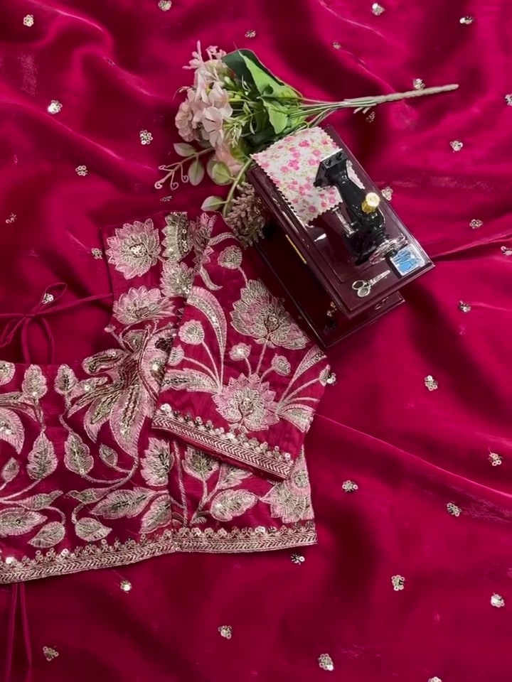 ✨ Organza Embroidered Sequin Work Saree With Heavy Designer Blouse
