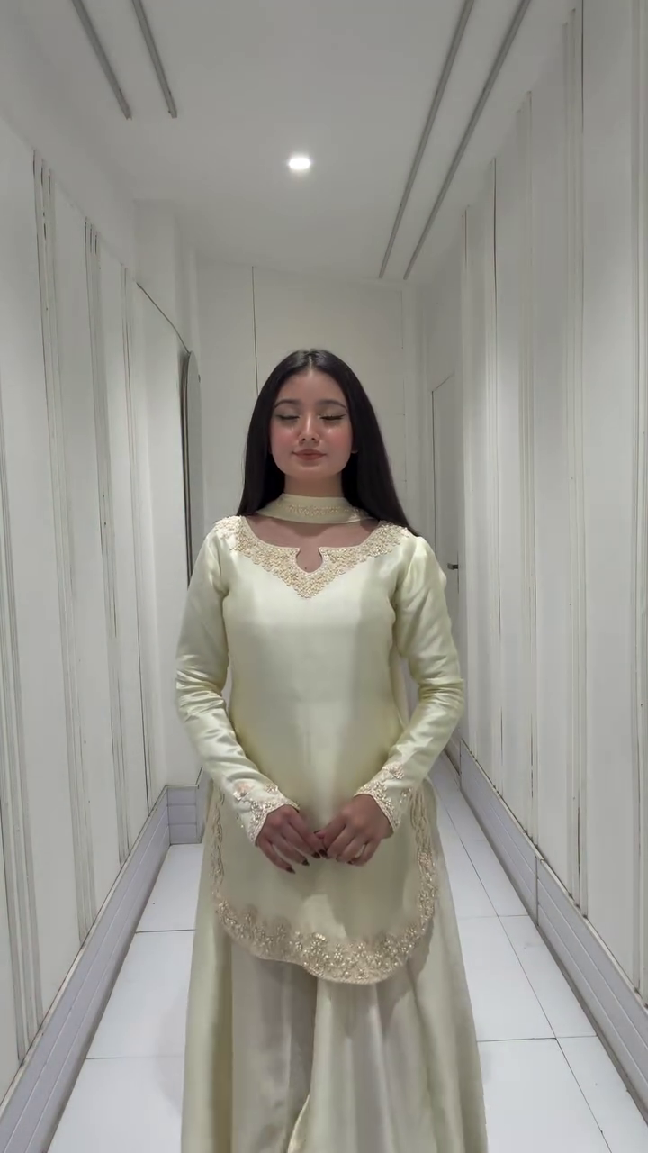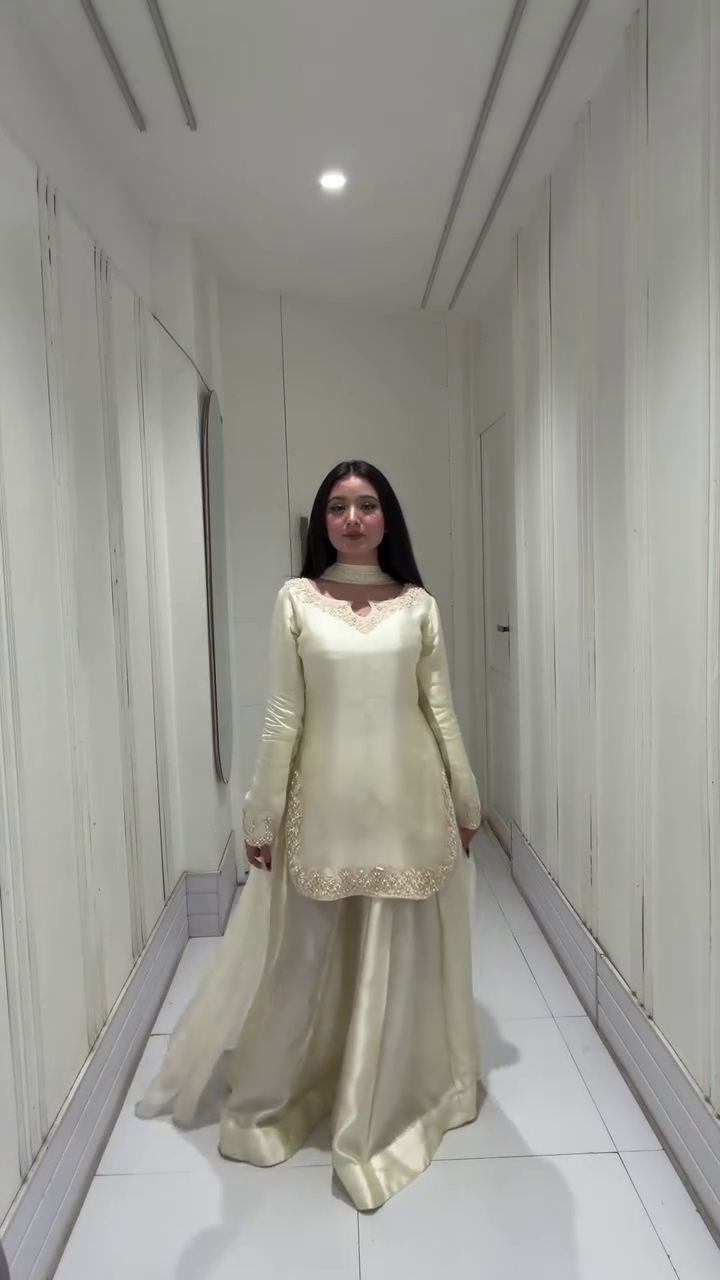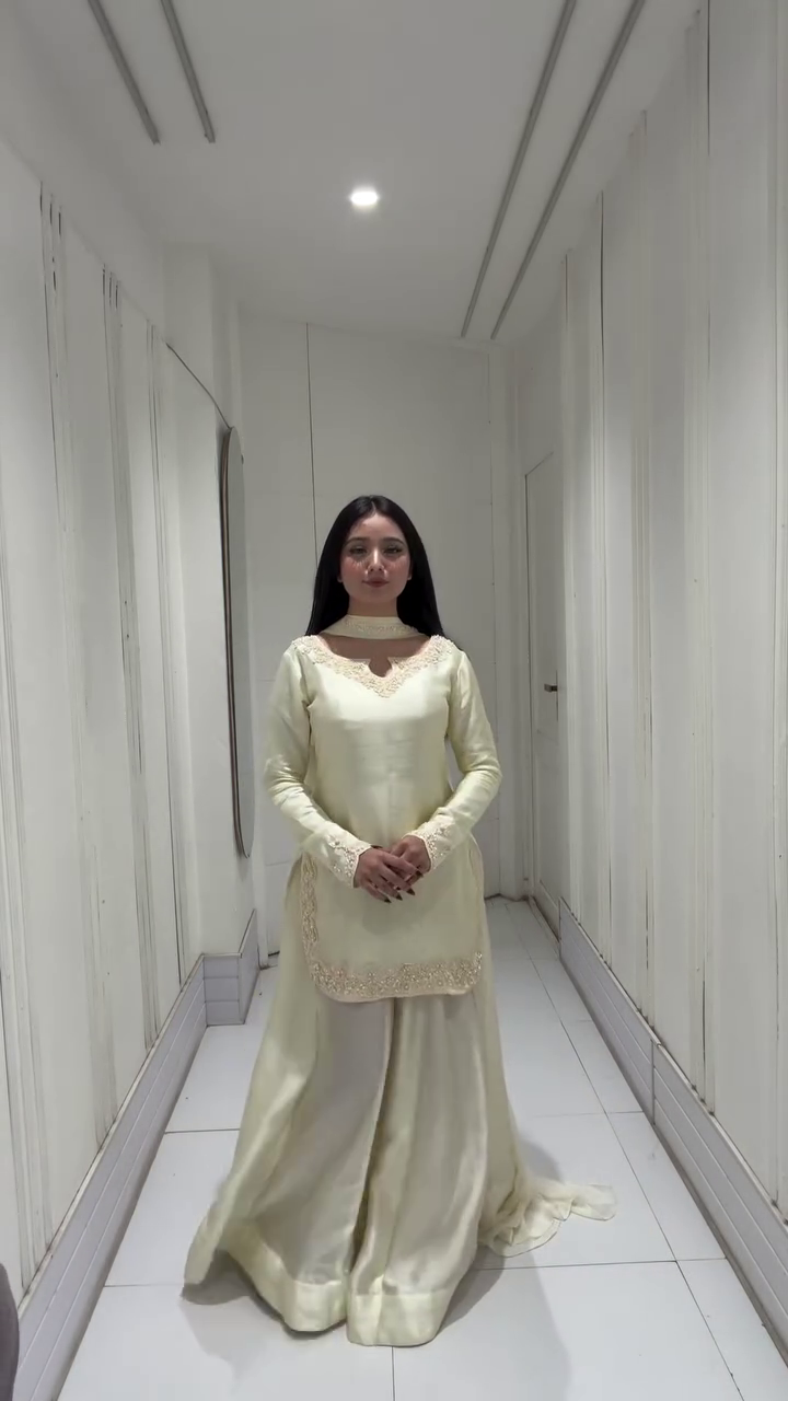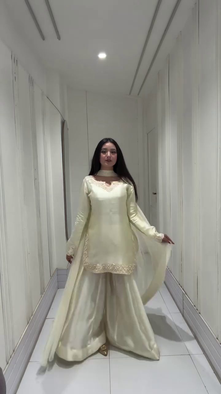 Step into pure elegance with this breathtaking ivory kurta palazzo set 🤍—a perfect blend of minimal sophistication and regal charm. Designed for modern women who appreciate understated luxury, this outfit features a soft, graceful silhouette that flows beautifully with every step 💫. The soothing ivory tone adds a timeless appeal, making it ideal for festive celebrations, special occasions, or elegant evening gatherings 🌙.
