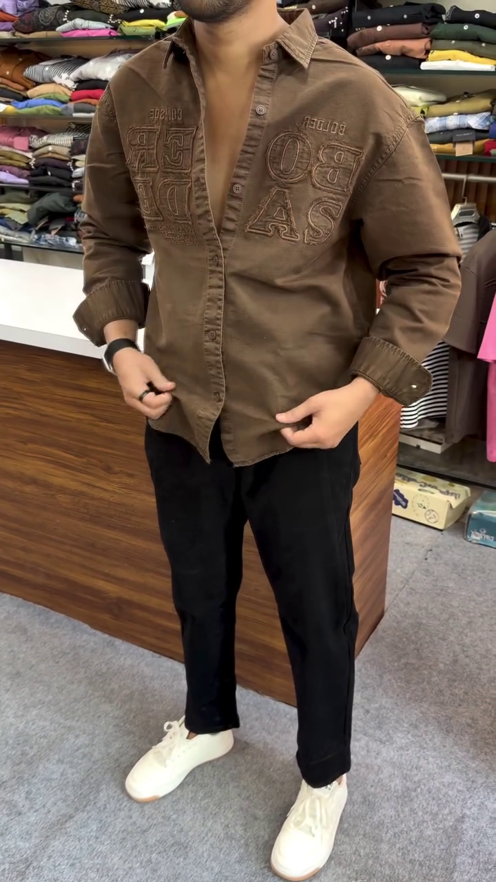 Step up your fashion game with this ultra-stylish beige embroidered shirt 😍—a perfect blend of comfort, confidence, and modern streetwear vibes. Designed for those who love to stand out effortlessly, this shirt features bold textured embroidery on the front, giving it a premium and eye-catching look 🔥. The soft neutral beige tone adds a classy touch, making it versatile enough for both casual outings and semi-formal occasions 👌.