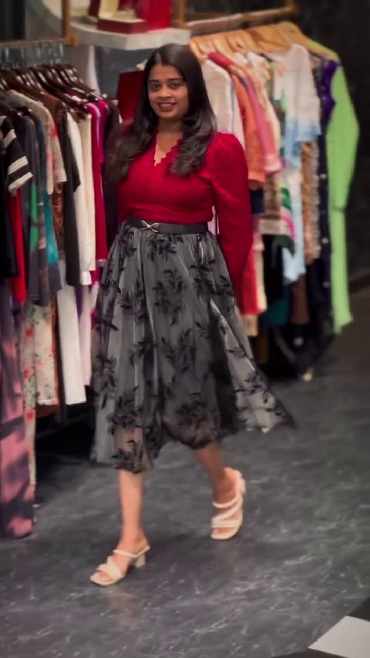 Paired with a flowy black mesh midi skirt π€πΈ, this outfit brings the perfect contrast. The skirt is adorned with subtle floral patterns πΏ that create a dreamy, elegant vibe. Its lightweight and breezy fabric π¬οΈ ensures comfort while allowing graceful movement, giving you that effortless twirl-worthy feel π«. The high-waist fit defines your waistline perfectly, creating a flattering silhouette.