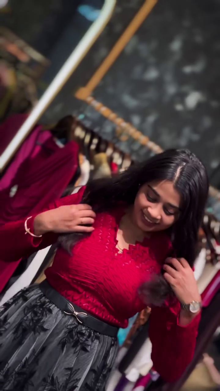The set features a gorgeous deep ruby red top β€οΈπ₯ crafted with a soft textured finish that hugs your silhouette beautifully. The V-neckline with delicate detailing π adds a touch of sophistication, while the full sleeves β¨ give it a classy and refined look. The fitted design enhances your shape, making you feel confident and stylish at every step π.