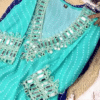 Crafted In Flowing Anarkali Silhouette, The Kurta Features An Opulent Flare That Enhances Movement And Grace. The Heavy Mirror Work Adorns The Neckline And Sleeves, Creating A Radiant Look That Catches The Light From Every Angle. Each Detail Is Thoughtfully Placed To Highlight Feminine Charm While Offering A Luxurious Festive Feel.