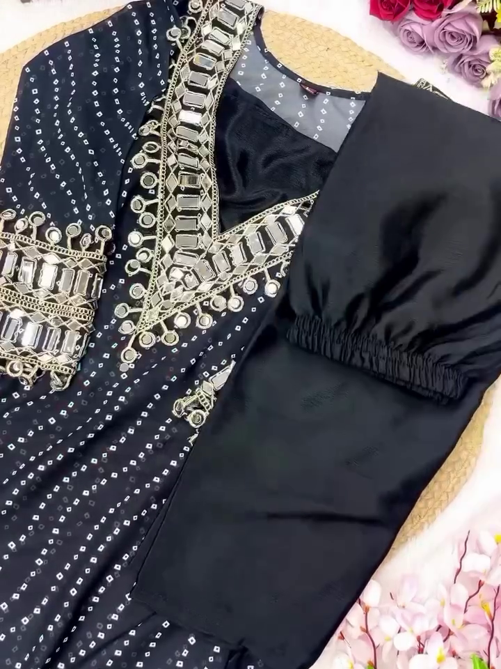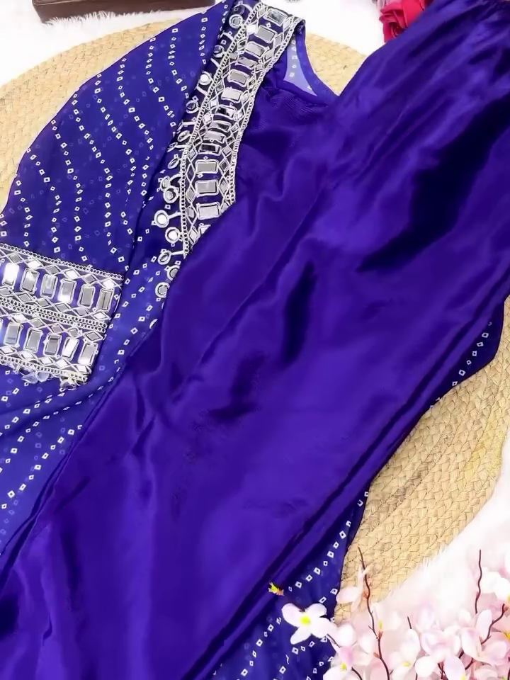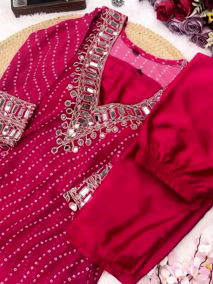 β¨ Elegant Bandhej Print With All-Over Mirror Work