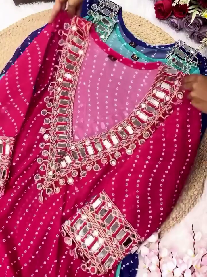 π Designer Bandhej Mirror Work Anarkali Kurta Set π With Heavy Embellished Neck & Sleeve Detailing | Available In Multiple Festive Colors