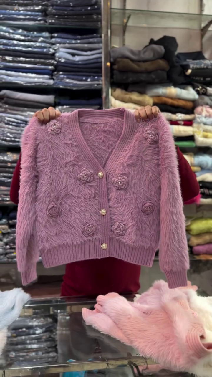 💞 Crafted from irresistibly soft faux fur knit fabric, this plush pink cardigan brings you the snuggliest warmth for chilly mornings and breezy evenings. Each section of the cardigan is adorned with blooming 3D rosette appliqués, adding stunning visual interest and tactile beauty.