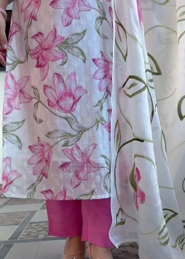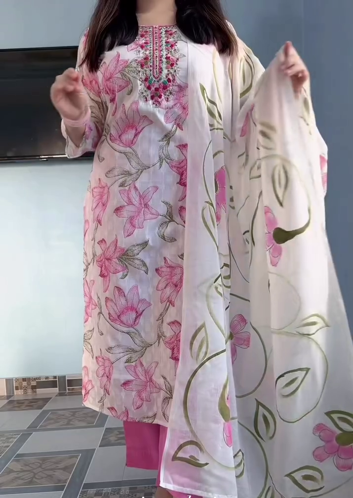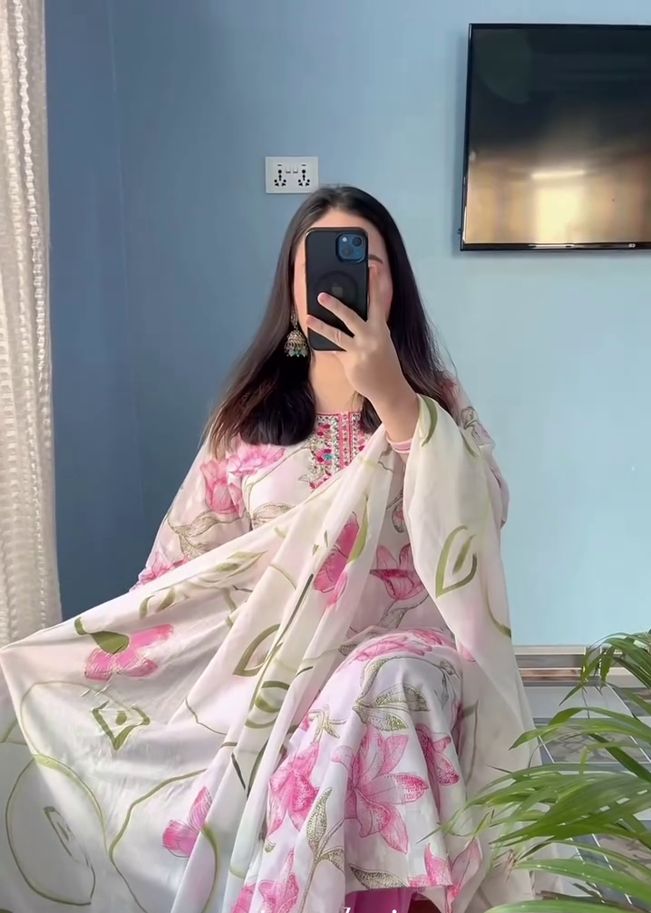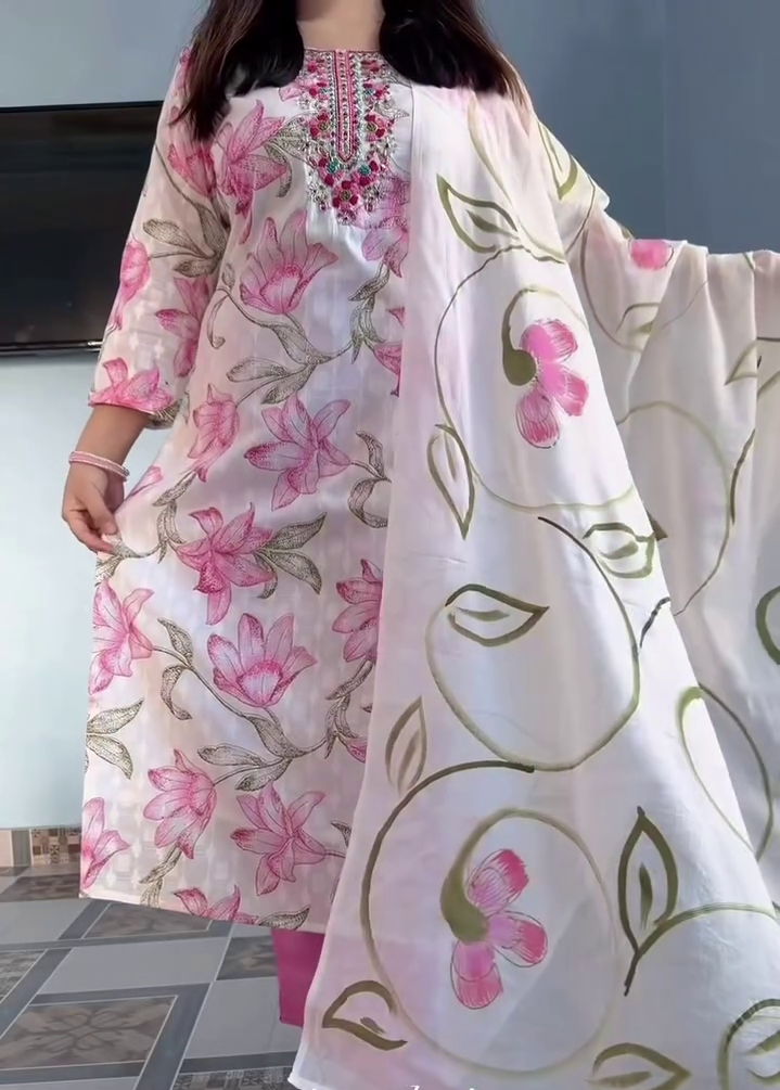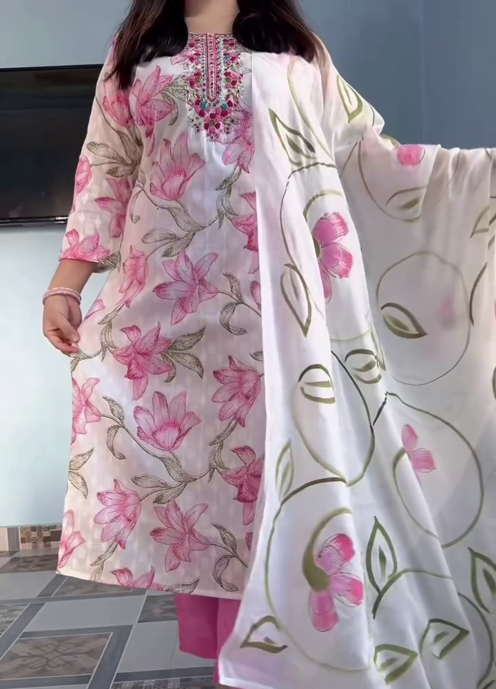 Paired with matching bottoms and a stylish dupatta, this set becomes a complete fashion statement π«. The dupatta features complementary floral patterns with a soft drape that enhances the overall elegance of the outfit π·. Whether you carry it traditionally or style it in a modern way, it adds an extra layer of grace to your look.
