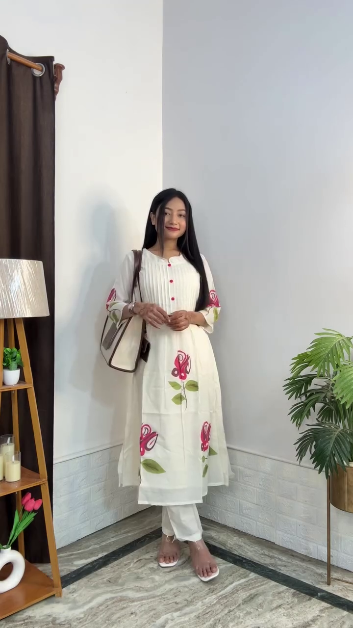 The set features a flowy ivory kurta πΈ adorned with delicate nature-inspired floral prints πΏ in earthy tones. The subtle yet artistic motifs give it a refreshing and calming aesthetic, making it ideal for everyday elegance as well as special occasions πΌ. The straight-cut silhouette ensures a flattering fit, while the lightweight fabric keeps you comfortable all day long π¬οΈπ.