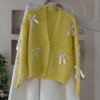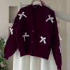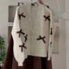 Off-white ribbed knit with multiple hand-tied brown bows for a retro vibe π§Έ