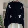 π “Classic Romantic Ribbed Pearl Off-White Cardigan Embellished with Vintage Brown Bows for Lovers of Soft Feminine Dreamy Outfits” πβ