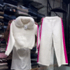 - Ultra-soft white fleece co-ord set includes a zip-up jacket and straight-leg pants π