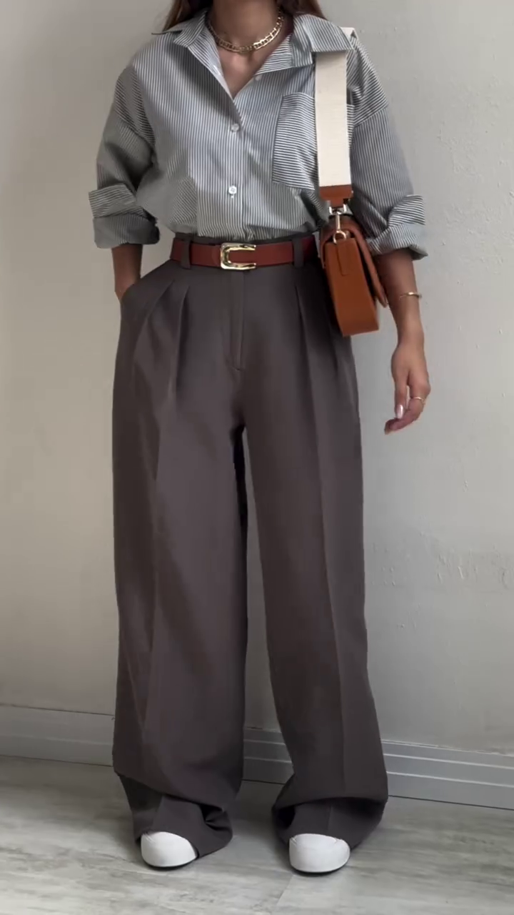 Style Tip 💼: Complete the look with white sneakers for casual flair or pointed heels for a polished finish. Add a tan bag and gold accessories for the perfect urban edge.