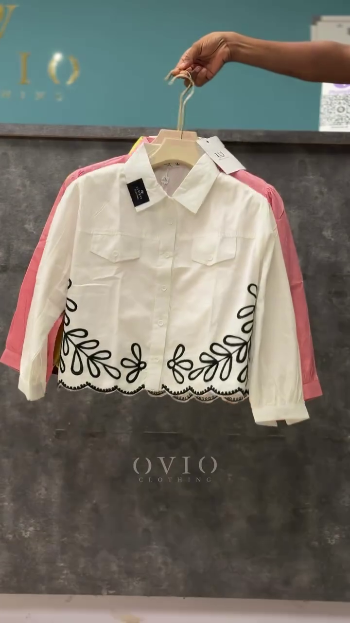✨ Step into timeless sophistication with our Luxury Black Embroidered Crop Shirt from the exclusive Ovio Signature Collection. Designed for the modern woman who values class and creativity, this stunning shirt blends minimalist tailoring with artistic embroidery, making it an instant head-turner for any occasion.