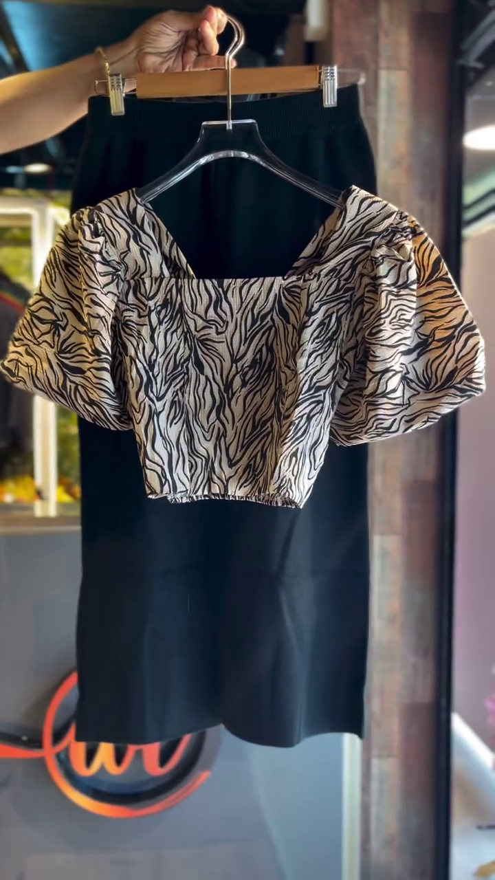 🔥 The crop top features dramatic puff sleeves and an elasticated hem, designed to enhance your shoulders and waistline beautifully. The zebra-inspired print adds an instant dose of attitude and sophistication — bold yet elegant. The fabric drapes smoothly, ensuring a flattering fit while letting your personality shine. 🦓