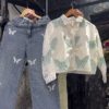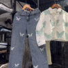 Paired with chic wide-leg denim jeans π, this set creates the perfect balance of casual and stylish. The subtle butterfly detailing on the jeans π¦β¨ ties the whole look together beautifully, making it a coordinated and eye-catching outfit. The relaxed fit ensures comfort and freedom of movement π, perfect for everyday wear.