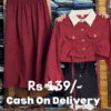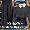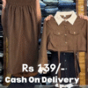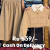 This chic beige co‑ord set 🤎 features a smocked elastic tube skirt and a cropped long‑sleeve jacket with a contrast white collar 🤍, giving a cute yet polished look. The skirt has a stretchy ruched waistband that fits comfortably around the bust or waist, flowing into a soft A‑line silhouette that moves beautifully as you walk. The cropped jacket includes front flap pockets, metallic buttons, and long sleeves, making it perfect for layering over fitted tops or wearing as a set. Thin hanging ties add a trendy detail at the hem. Ideal for college looks, brunch dates, or casual parties, this outfit pairs well with sneakers, boots, or sandals. Accessorize with a mini handbag and delicate jewelry for a complete aesthetic vibe. ✨