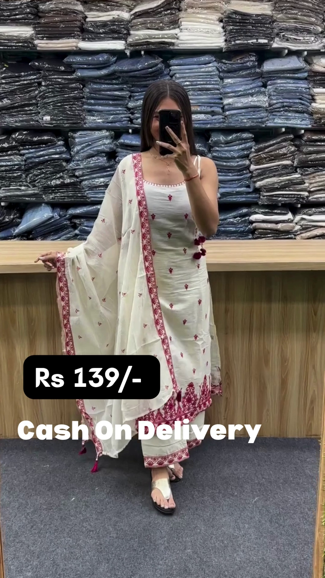 Get ready for an amazing deal! This elegant Embroidered Ethnic Kurta Set is available at the unbelievably low price of Rs 139/-! ๐คฏ Available in both a white base with maroon embroideryย and a cream/beige base with subtle gold detailing these sets offer high style on a tight budget.
