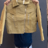 This camel tan moto‑style jacket 🧥 is a chic statement piece for cool‑weather outfits. The cropped length highlights the waist, while structured panel stitching adds shape and a premium look 🤎. It features a sharp collar with metallic snap buttons, shoulder tabs for a biker vibe, and a sleek front zipper closure. Two vertical zip pockets not only look stylish but are also functional for carrying small essentials or warming your hands. Long sleeves with clean cuffs make it easy to layer over tops and knits. The neutral camel shade pairs beautifully with denim, black pants, dresses, or skirts, making it a versatile wardrobe hero. Perfect for coffee dates, city outings, college, or night plans, this jacket instantly upgrades any basic outfit. Style it with jeans and boots for a casual look or with a dress and heels for an edgy evening ensemble. ✨