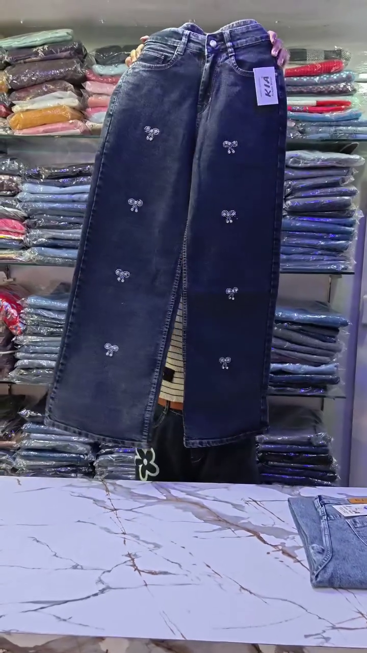 Be the first to review “Dark Washed Wide-Leg Denim Jeans with All-Over Minimal Rhinestone Butterfly Embellishments πŸ¦‹βœ¨”