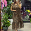 This stunning full-length maxi dress ๐โจ features a bold brown and black leopard animal print pattern that creates a fierce yet sophisticated look ๐ค๐ค. Designed with a flattering V-neckline ๐, the dress enhances the neckline beautifully while maintaining a graceful silhouette ๐. The soft cap sleeves ๐ธ add a feminine touch and provide light shoulder coverage, making it perfect for warm weather styling โ๏ธ.