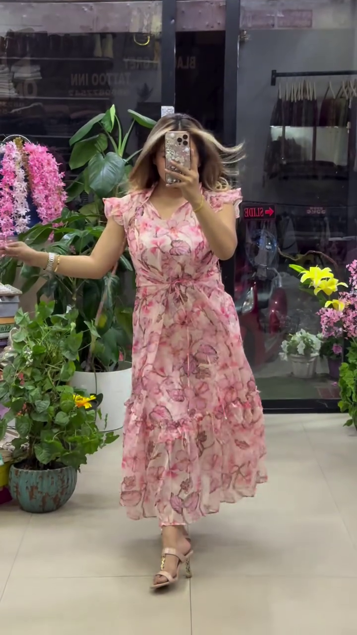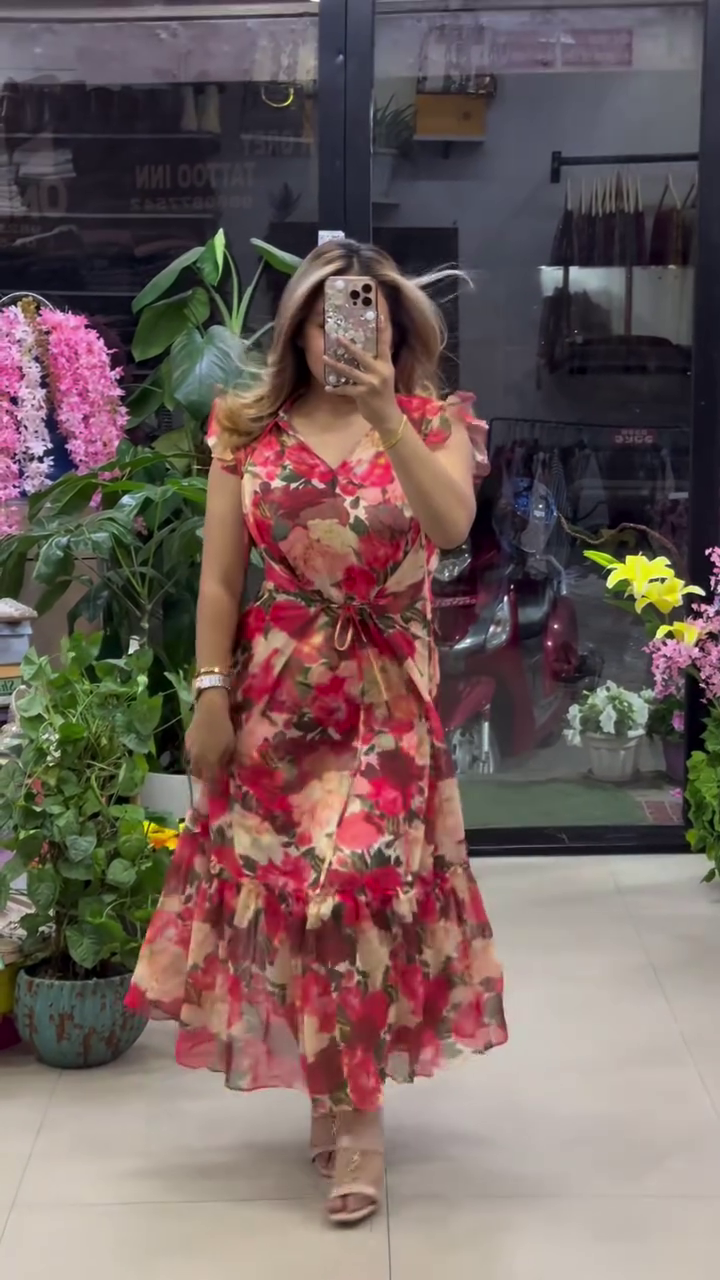 This dress is ideal for brunch outings โ, vacation wear ๐ด, casual gatherings ๐, shopping days ๐๏ธ, and evening strolls ๐. Pair it with minimal heels ๐ก or flats for effortless styling. The flowy silhouette makes it suitable for both relaxed and semi-dressy occasions ๐ซ. (Any visible brand/store name from the background has been excluded as requested.)
