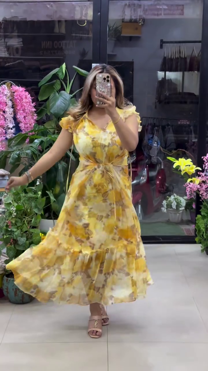 The bodice flows effortlessly into a relaxed A-line structure ๐ฟ that gently skims the body for a comfortable and flattering fit ๐ค. The lower portion features a tiered panel design with a subtle ruffle hemline ๐, giving the dress natural movement and an airy finish as you walk ๐ฌ๏ธ. Crafted from lightweight chiffon-style fabric with a soft inner lining ๐ผ, it ensures breathability and all-day comfort without being see-through โจ.