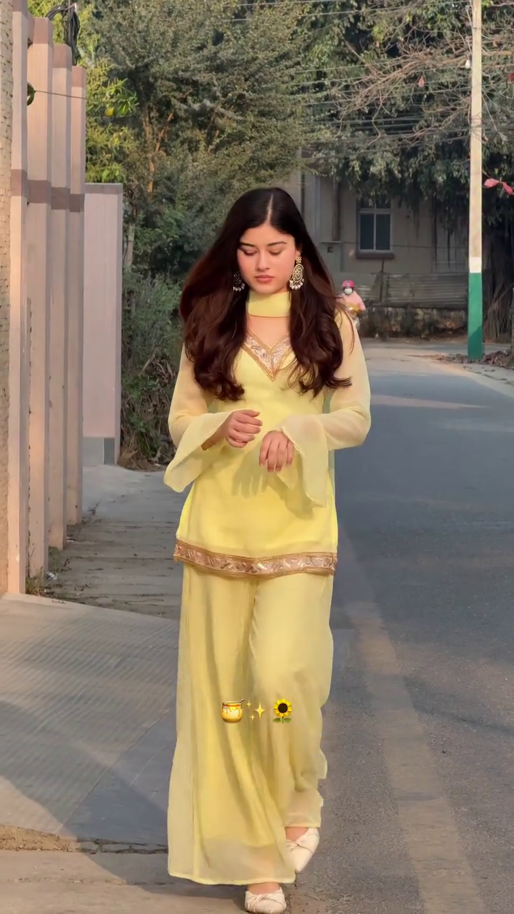 Radiate soft elegance with this pastel yellow minimal embroidered kurti and palazzo suit set, designed for graceful everyday ethnic style and light festive occasions . The outfit features a soft pastel yellow tone that brings a fresh, soothing, and sophisticated vibe to your wardrobe.