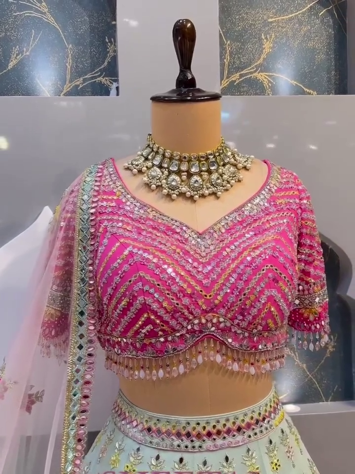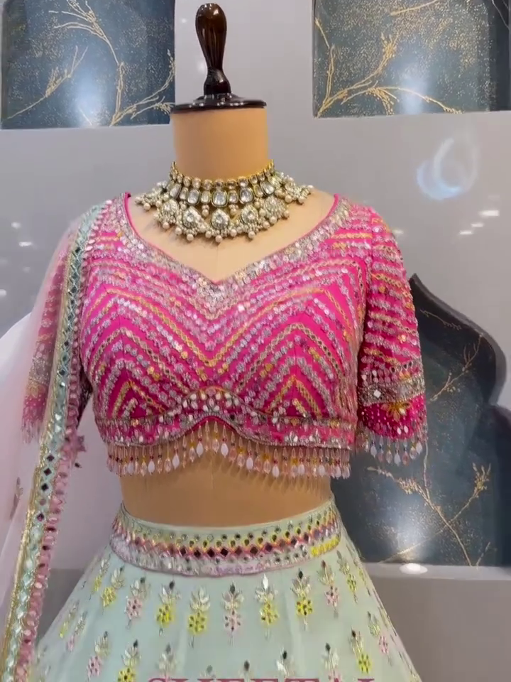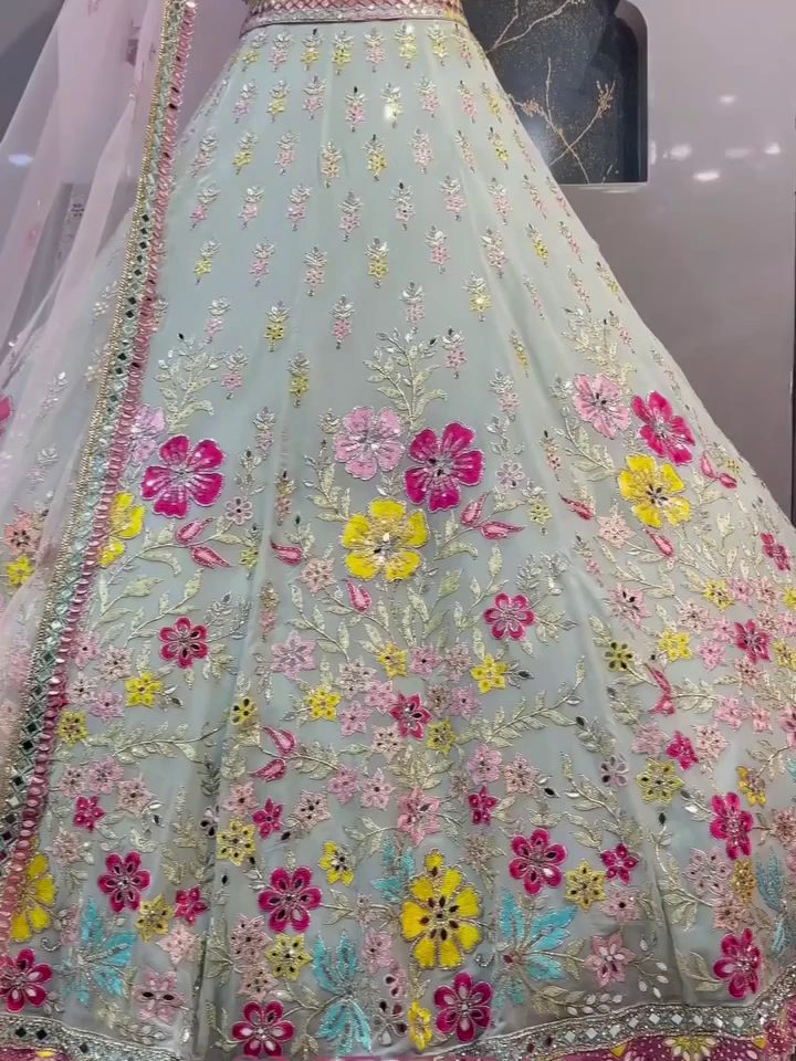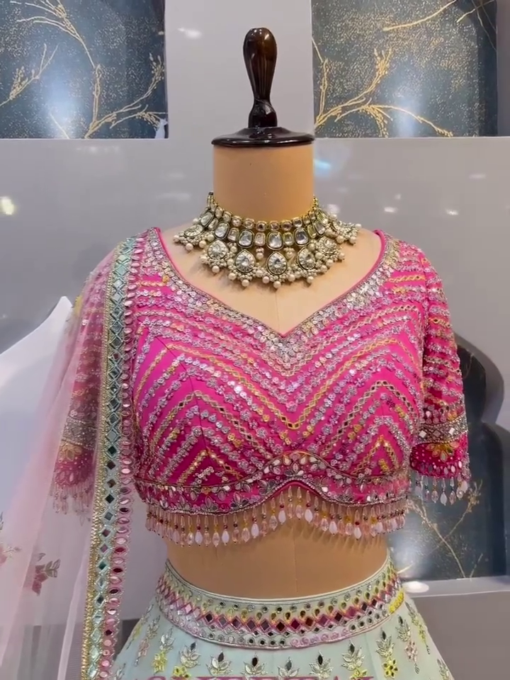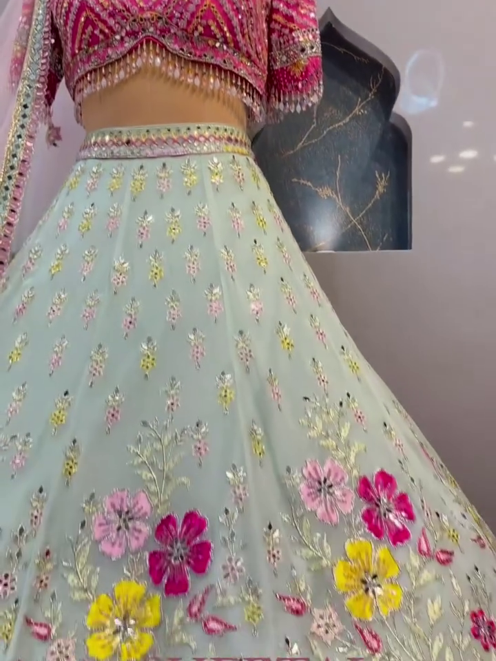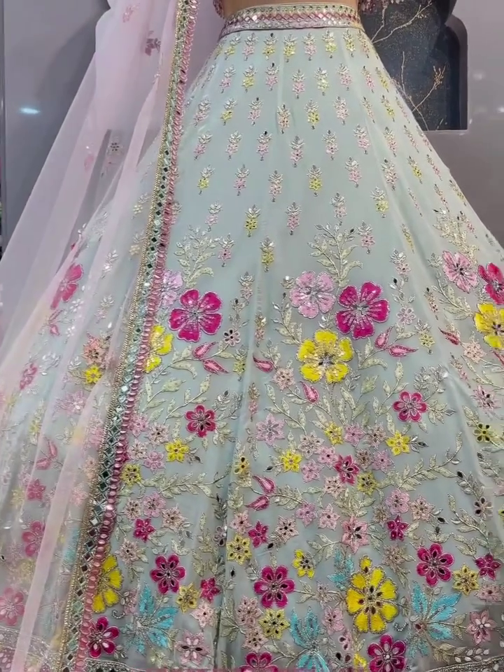 Crafted From Lightweight, Flowing Georgette Fabric, The Lehenga Features A Beautiful Flare That Moves Gracefully With Every Step. Whether You’re Walking Down A Wedding Path Or Twirling At A Sangeet, The Look Is Both Timeless And Glamorous.