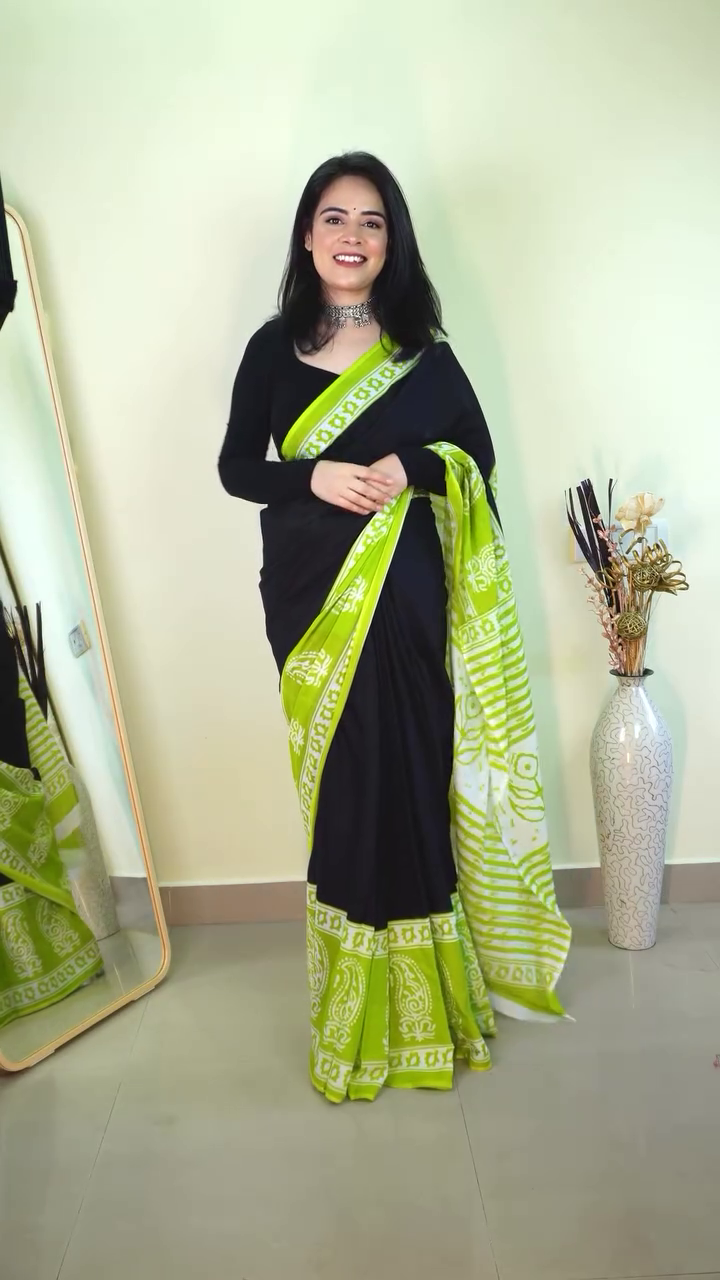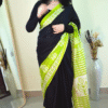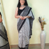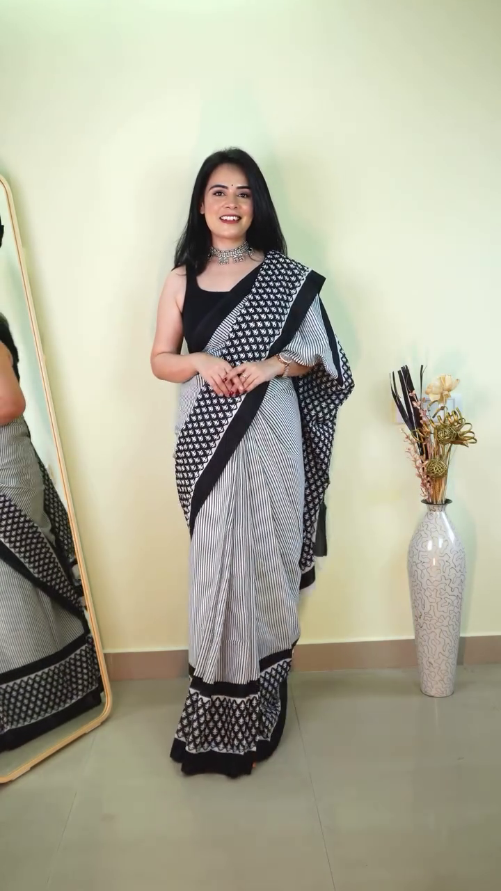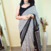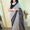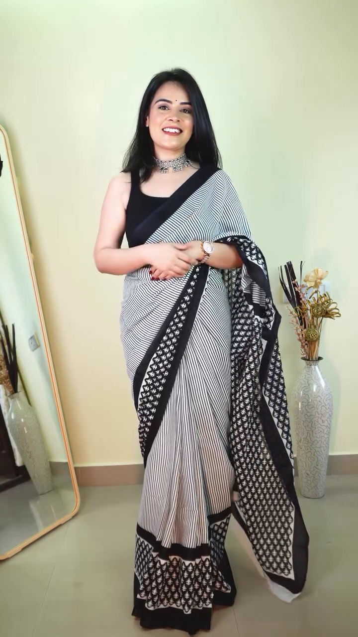Be the first to review “lassic Black and White Fine Stripe Saree with Bold Black Printed Border and Matching Sleeveless Black Blouse”