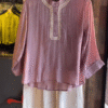 The high Mandarin neckline with dainty buttons enhances its elegance, while the slightly flared hem ensures a flattering flow. The muted mauve tone exudes serenity and warmth, making it perfect for daytime gatherings, art exhibitions, or semi-formal office wear.