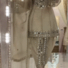 The fabric has a smooth, soft texture with graceful structure, allowing the garment to maintain its shape while remaining comfortable throughout the day.