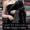 – **Heavy Embroidery:** The saree will feature heavy, intricate embroidery, which could include **zari**, **thread work**, **beadwork**, or **sequin detailing**. This embroidery adds a layer of opulence to the black saree and makes it perfect for special occasions.