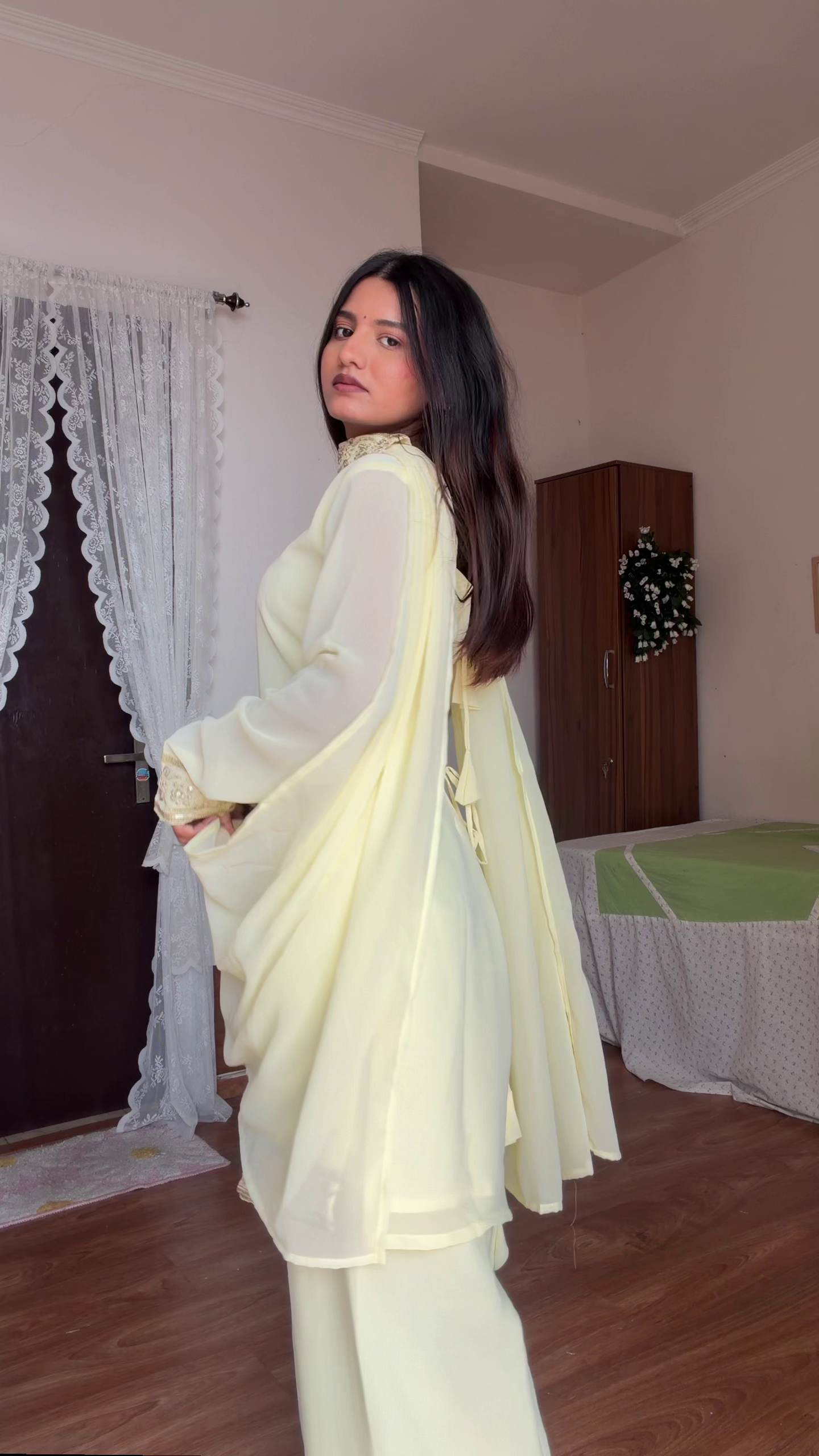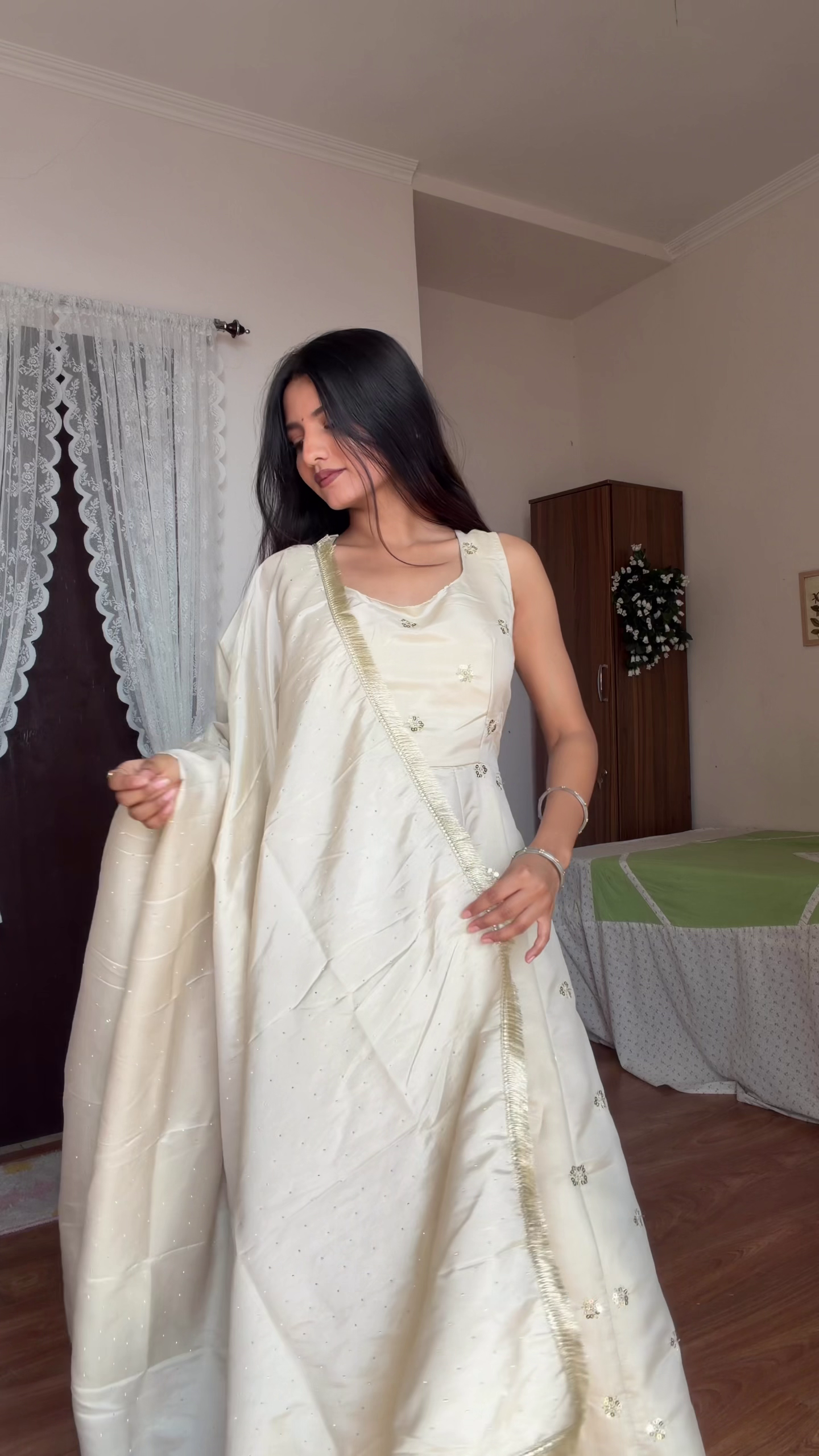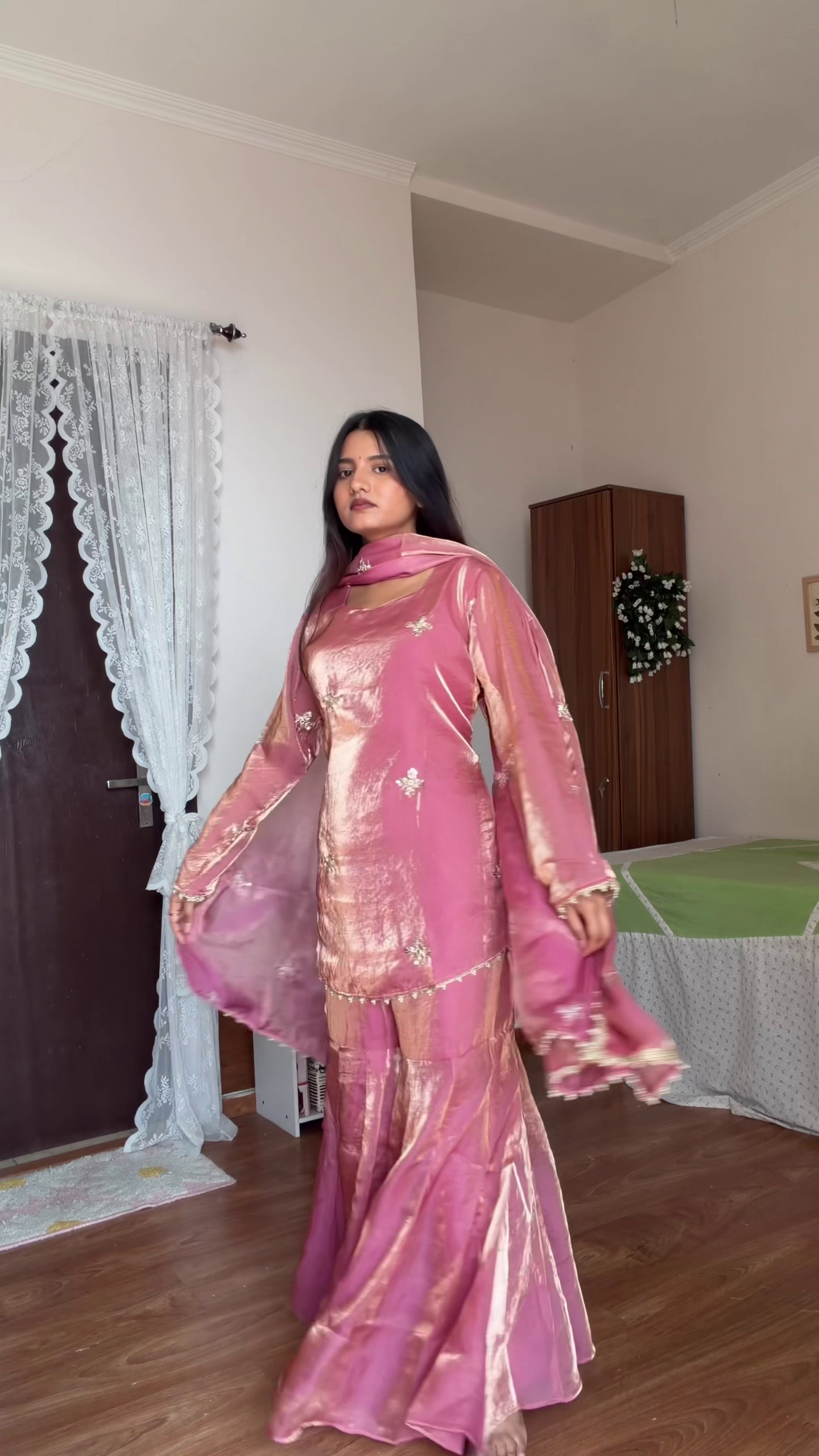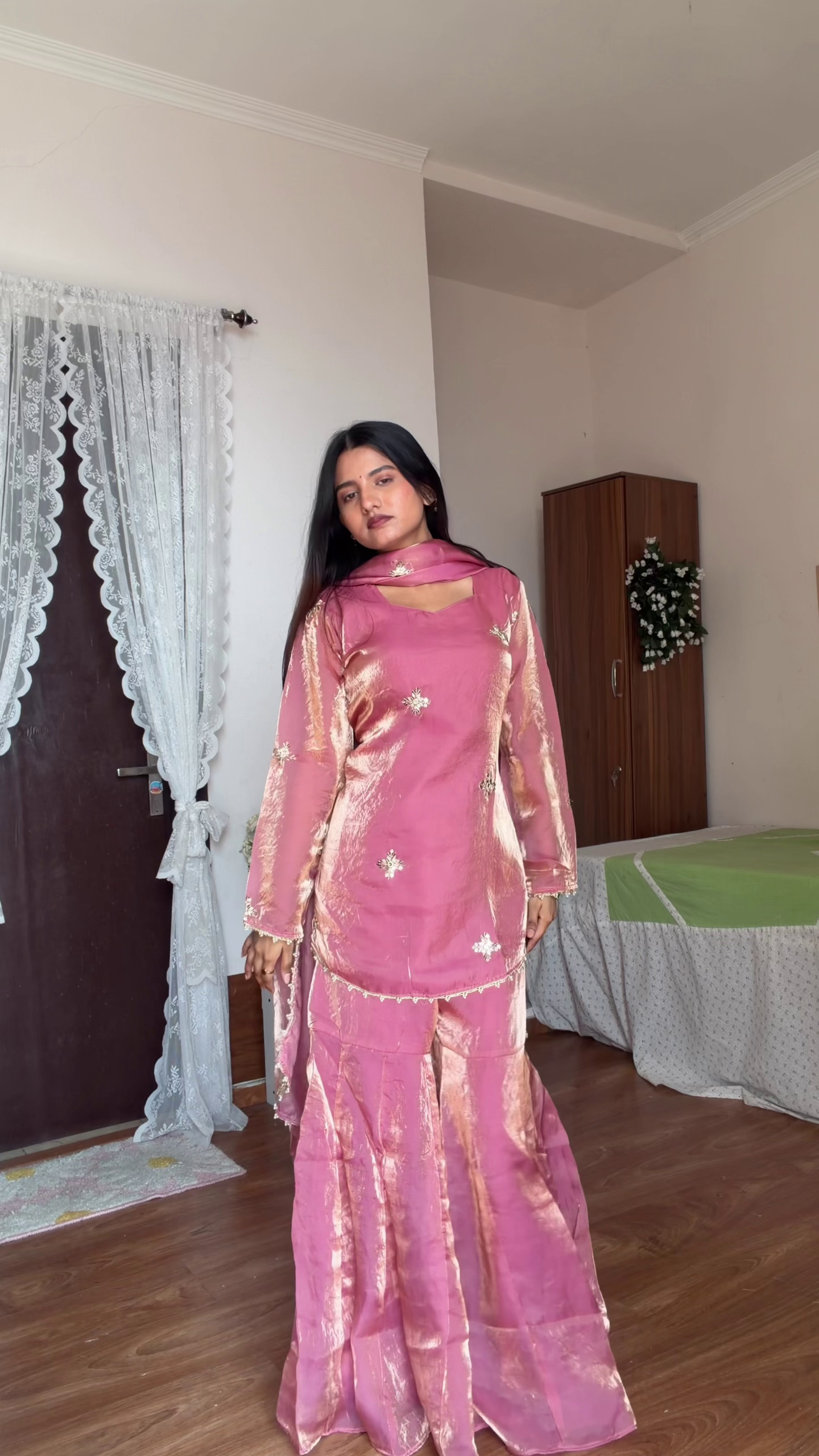 The matching palazzo pants 👖 complement the clean design, while the soft flowing dupatta 🧣 completes the traditional look. The minimal embroidery keeps it classy yet festive 💫.