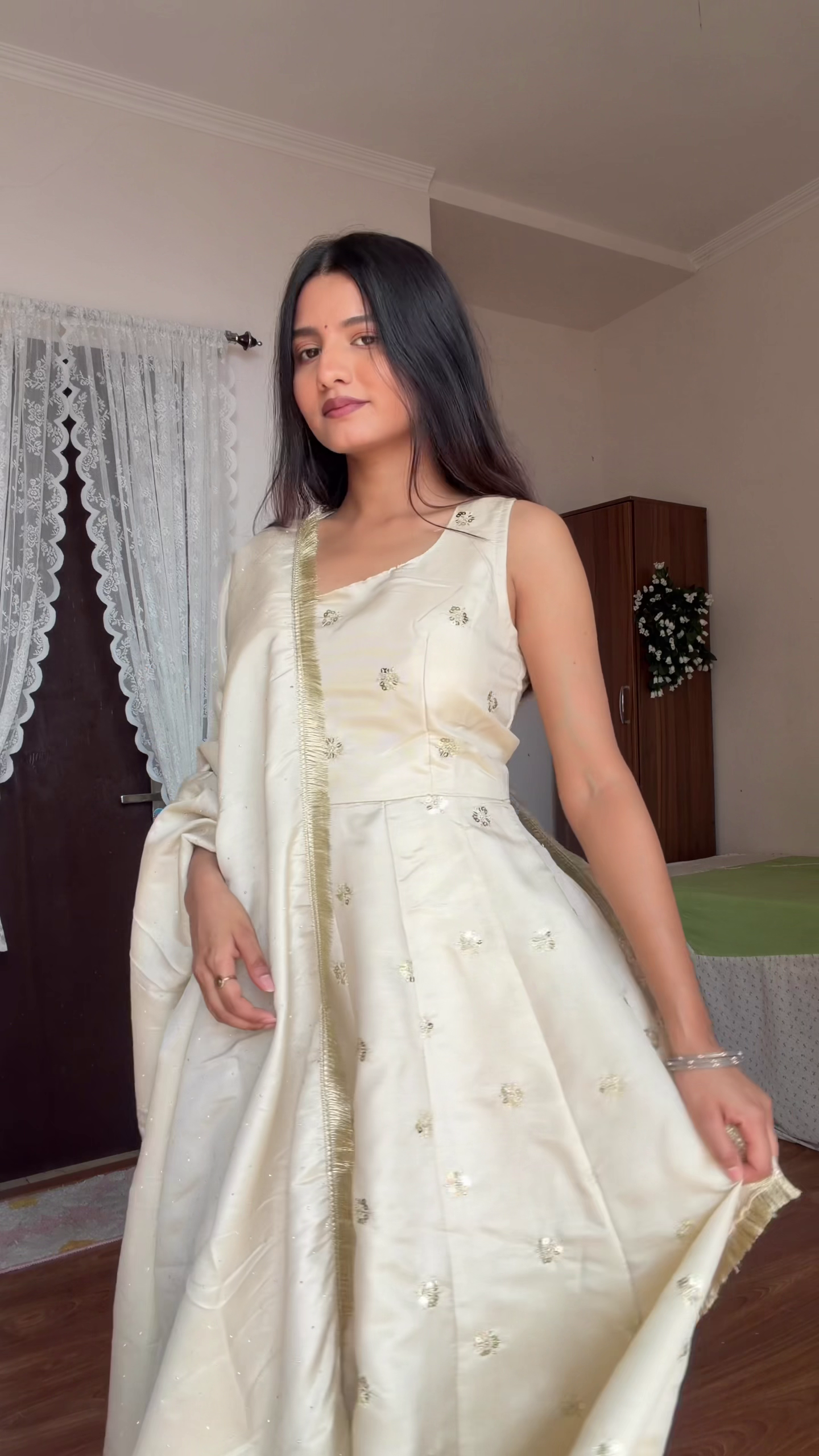 🔹 Detail: Gold embroidered borders ✨