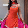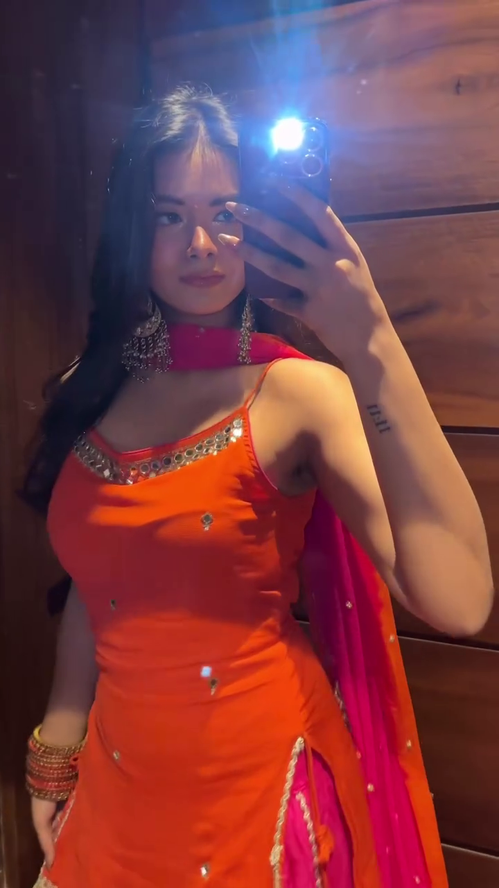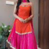 This stunning outfit features a vibrant orange sleeveless kurti paired with a flowy hot-pink lehenga, creating a graceful and festive contrast that instantly brightens any occasion βœ¨πŸ§‘πŸ’—. The kurti includes delicate mirror-work accents, adding sparkle and elegance to the entire look βœ¨πŸ’«. The lightweight lehenga is beautifully pleated for graceful movement, making it perfect for weddings, haldi, mehendi, festive gatherings, and sangeet nights πŸ’ƒπŸŒŸ.
