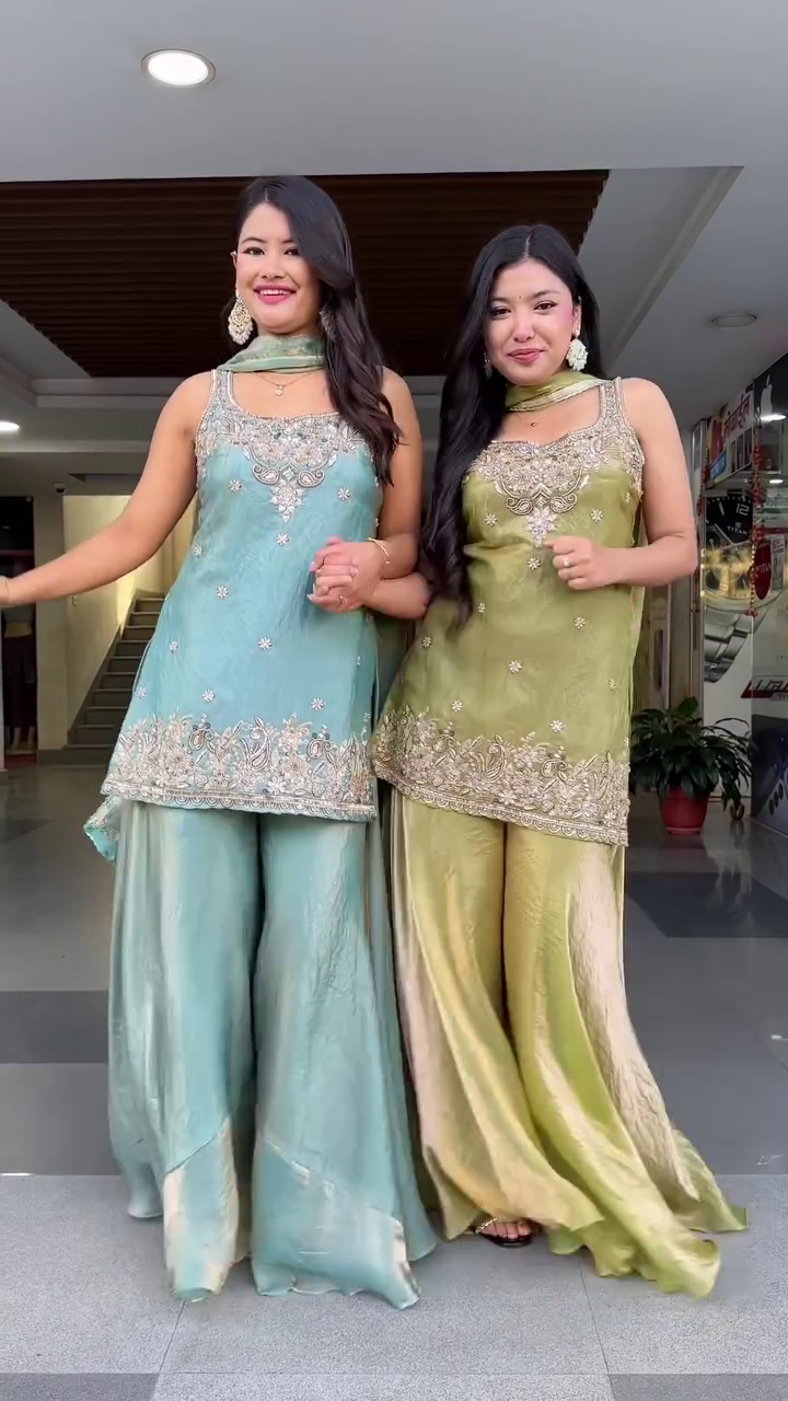 Celebrate festive fashion with these stunning Radiant Pastel Luxe Embroidered Sharara-Kurti Ensembles available in two gorgeous huesβAqua Blue π β¨ and Olive Green πΏπ. Perfect for daytime weddings, mehendi functions, festive brunches, or coordinated bestie looks, these outfits blend grace with shimmer effortlessly.