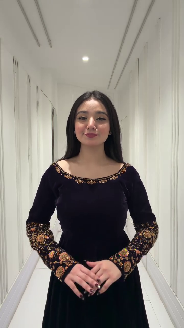 Embrace royal sophistication with this exquisite Midnight Black Velvet Anarkali Gown π€β¨, featuring a luxurious flared silhouette perfect for receptions, evening parties, and formal celebrations. Crafted from plush velvet, the gown drapes beautifully and feels ultra-soft against the skin.