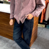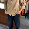 This fashionable two-piece men’s casual outfit features a relaxed textured shirt paired with classic dark wash denim jeans, creating a balanced modern style.