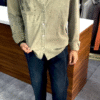 The shirt includes long sleeves, front buttons, and a chest pocket, maintaining a functional yet stylish design.