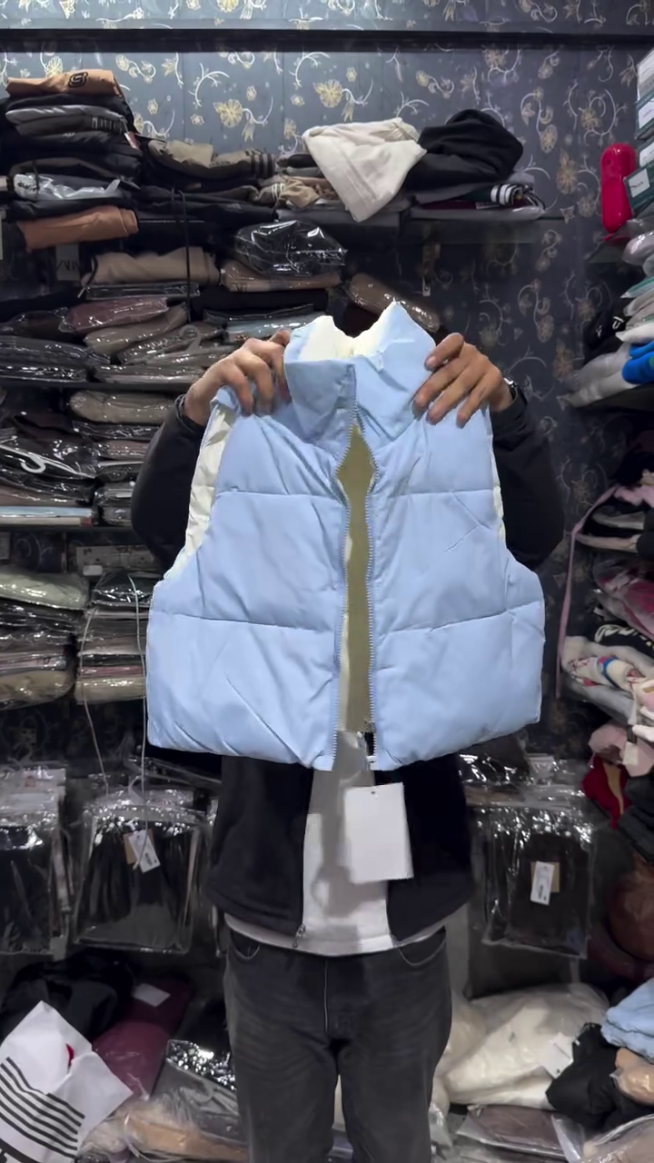 Stay warm and stylish with this sky blue padded sleeveless gilet 💙. The puffer design with horizontal quilting provides insulation without feeling too bulky, making it perfect for layering over hoodies, sweaters, or long‑sleeve tees. The high neck keeps cold air out and adds a sporty edge, while the front zipper allows easy wear and adjustable warmth ❄️. The soft pastel blue color brings a fresh, youthful vibe to winter outfits and pairs well with denim, joggers, or leggings. Ideal for travel, morning walks, college, and everyday casual looks. Lightweight yet cozy, this gilet is a must‑have layering piece in your winter collection. Pair it with sneakers and a beanie for a cool street‑style appearance.