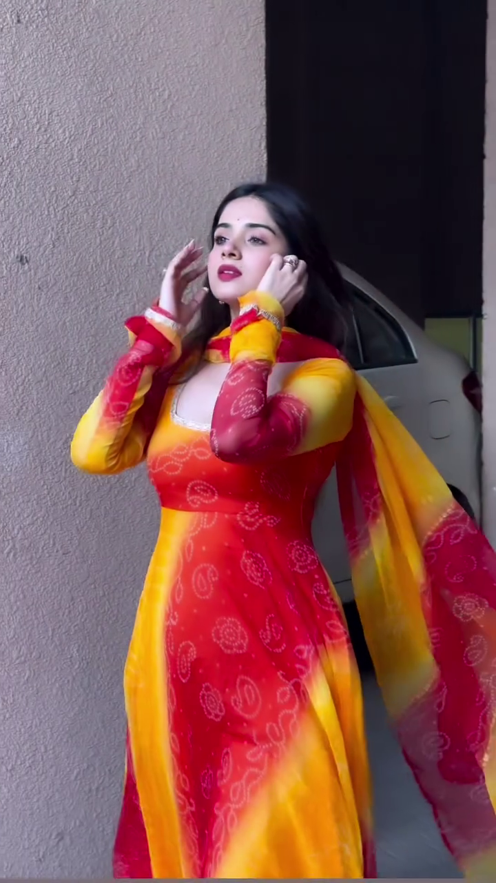 Brighten any celebration with this bold and captivating Sunset Radiance Fusion Anarkali Set, a stunning blend of vibrant yellow and deep red hues 🌼🔥❤️. The outfit encapsulates the warm beauty of a blazing sunset—making it an unforgettable festive choice.
