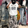 White Oversized Mesh Sports Jersey T-Shirt with Double β88β Numeric Print & Patch Detail ππ€π₯